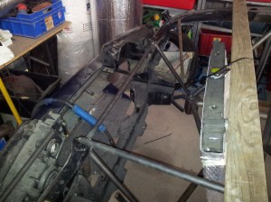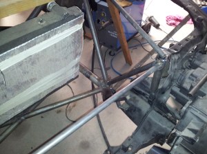 So, the other weekend I started construction on the last parts of the chassis – the very front end. I lot of the time was taken mocking up the possible locations for the radiator and the intercooler.