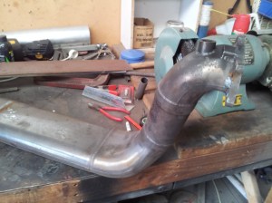 The I had a couple of other things to clean up. The second hand dump pipe that I got for the S15 had a small crack in it, so I welded that back up. Just need to wait until I get the car passed over the pits for the manual gearbox conversion, then this will be fitted up.