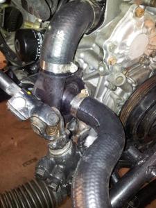 I was then ready to fit the water pump, hopefully for the final time. First I had to flush out the radiator with water, to make sure that is was clean of any metal shavings after I had cut it open and re-welded the outlets.