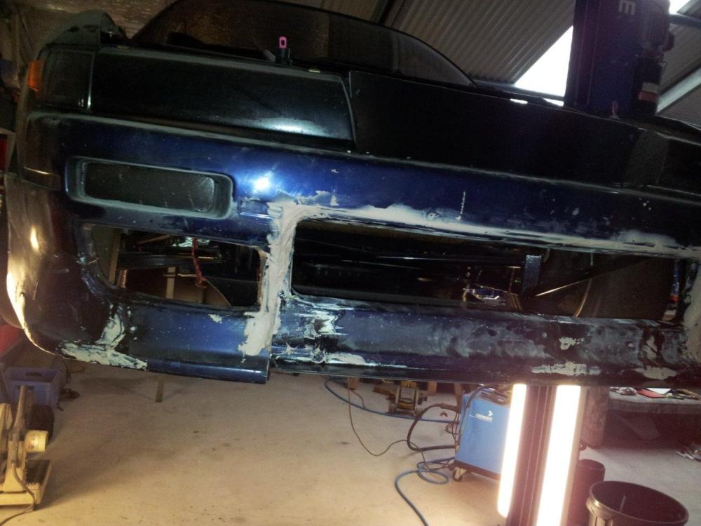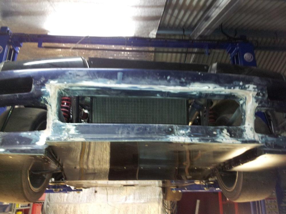 I’ve cut out a section of the front bumper, and raised it up higher. This creates a diverging ramp under the nose of the car, speeding up the airflow creating a low pressure under the car, sucking it to the ground (well that’s the theory anyway!)