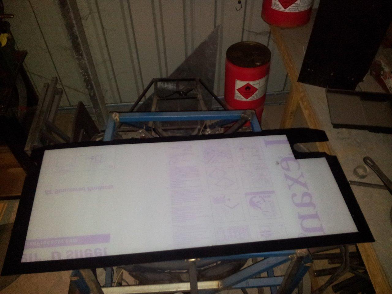 The next step was to make the lexan panel. After cutting it all out, I painted the outer edge black, where it would be glued and bolted to the car.