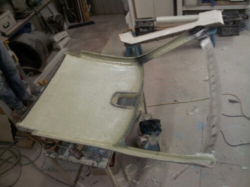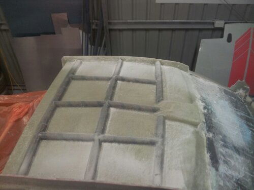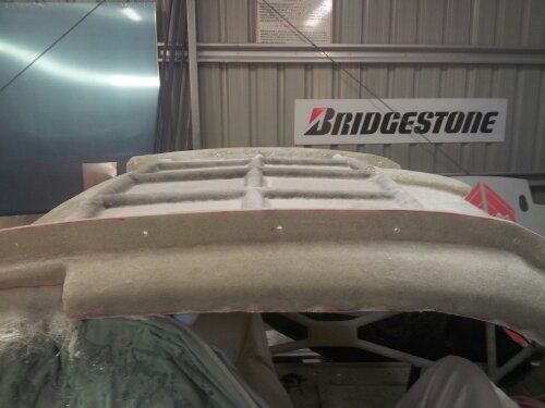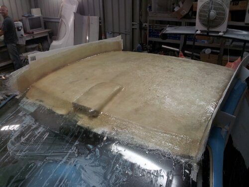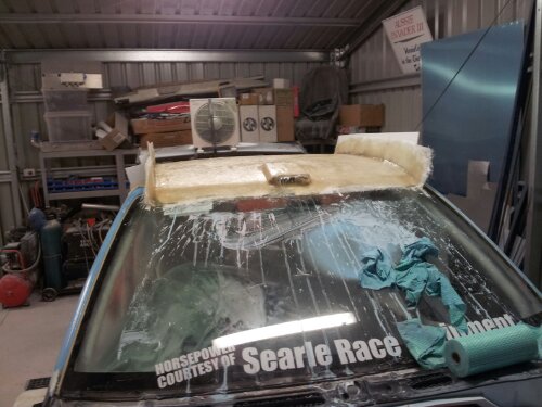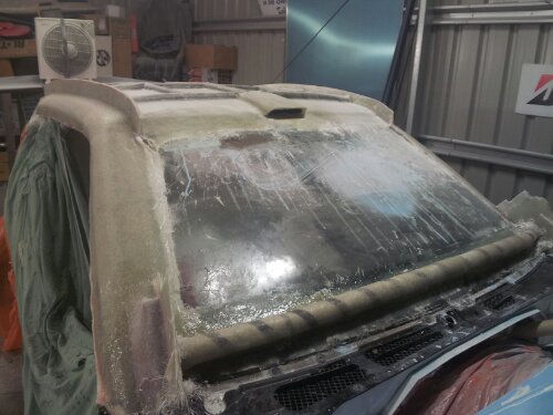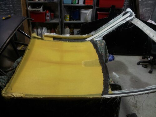 So last night, while waiting for the first coat of epoxy to set on the roof layup, I started stripping the rest of the car.