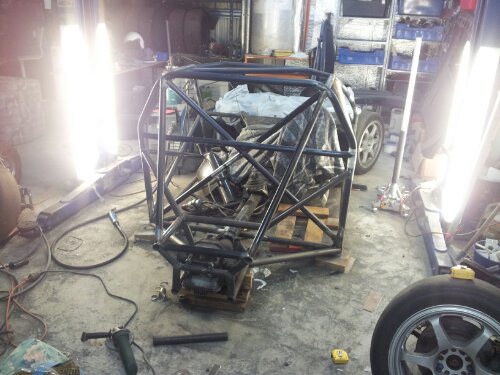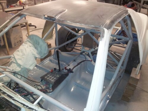 Made some good progress getting JCs car back together on sat. Roof mounted, sil rails finished, all the cage painted, firewall painted and floor painted.