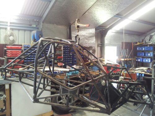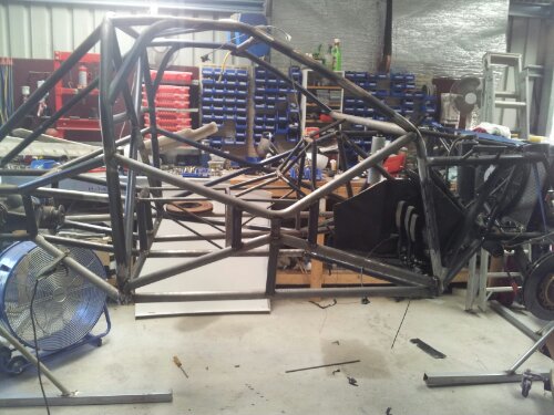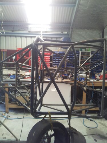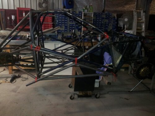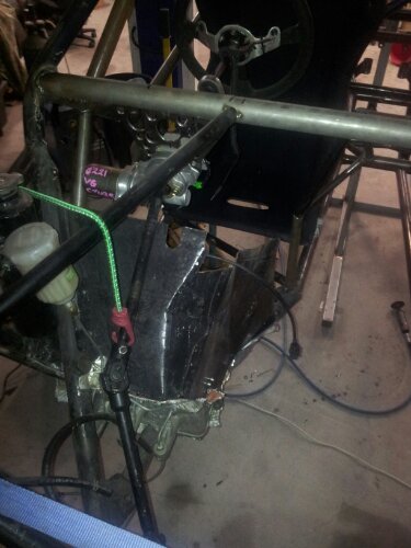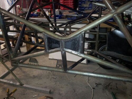 Then it was time to get it lined up in the front end. Do do this, I cut out some of the central tubes in the chassis, and then sat this in place.