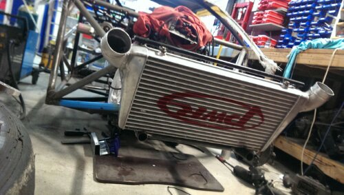 While thinking of where to mount things, and being unsure about the radiator idea, it was onto the intercooler mounting location. This one was an easier decision, so I make a removable front section, with mounts on it for the intercooler. This removable section will also hold the front end bodywork to the car.