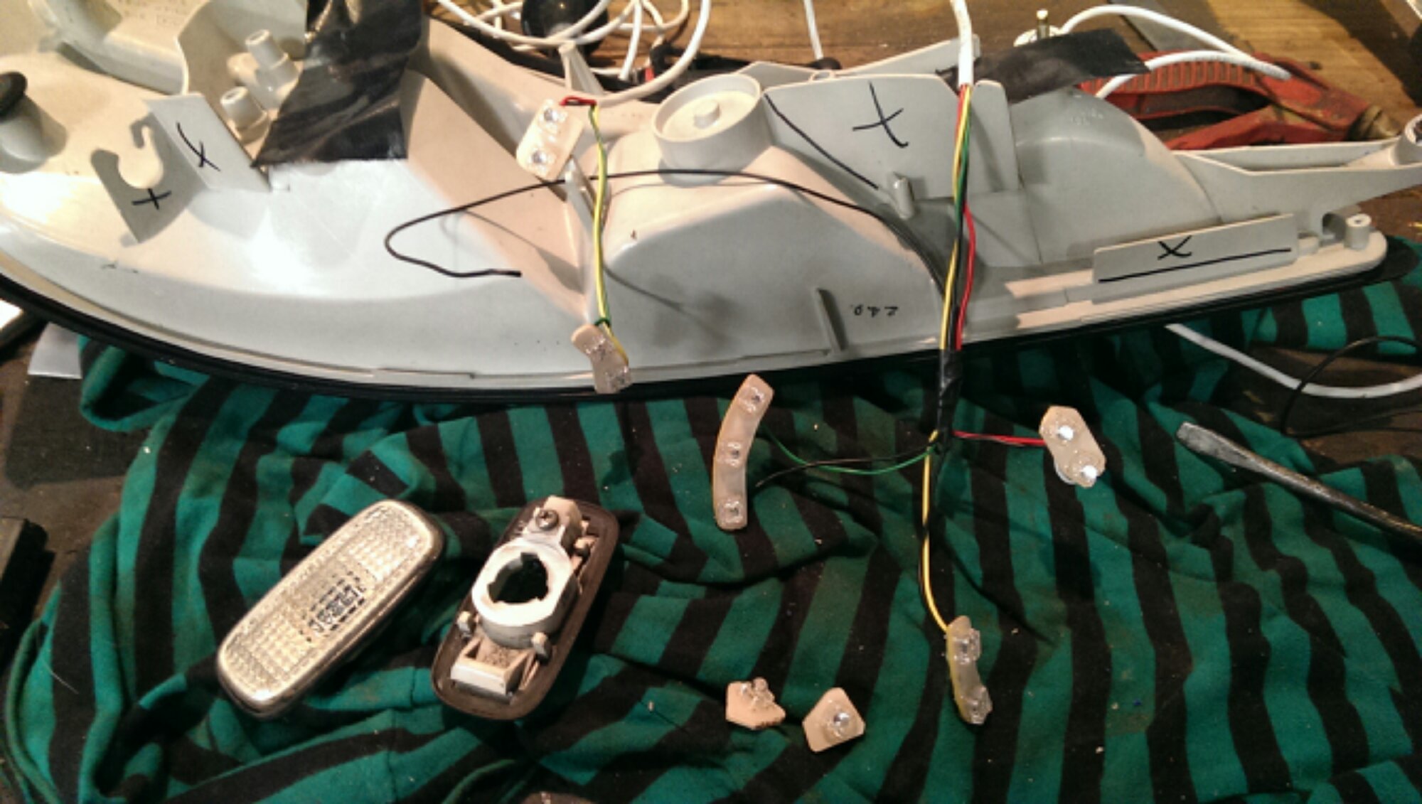I have a old LED trailer light that was broken, so cut it up and made some replacement globes for the tail lights and side indicators.
