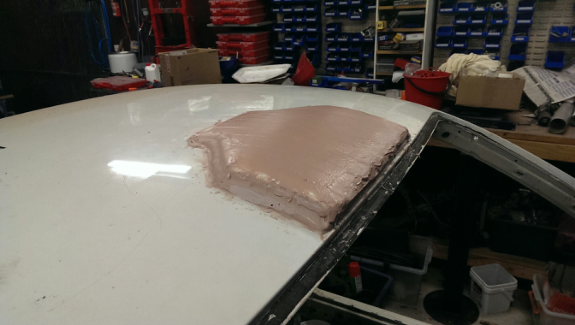 While the epoxy was drying on those, moved onto putting filler onto the roof rent, so that I can re-profile it a bit. Once I’m happy with the shape, I’ll take a fiberglass mold of it and make the new, lightweight roof scoop.