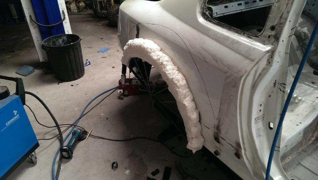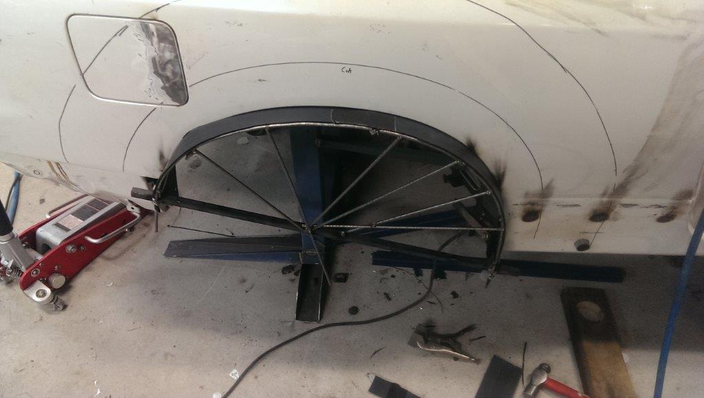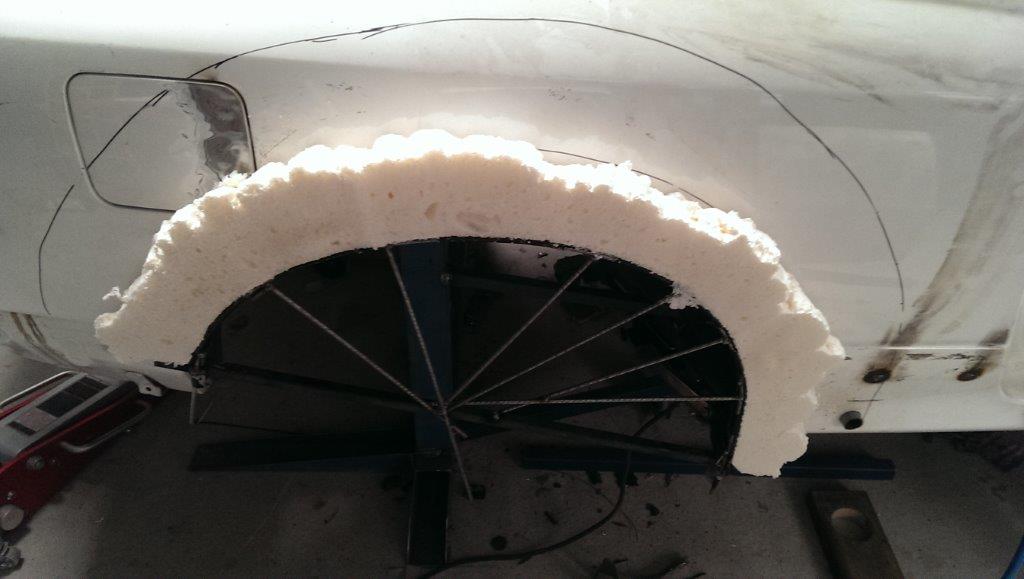 Started making up a frame so that I could build the wheel arch flares. First step was to make a copy of the shape of the arch, so that I can use that, spaced out 50mm, to form the new arches.