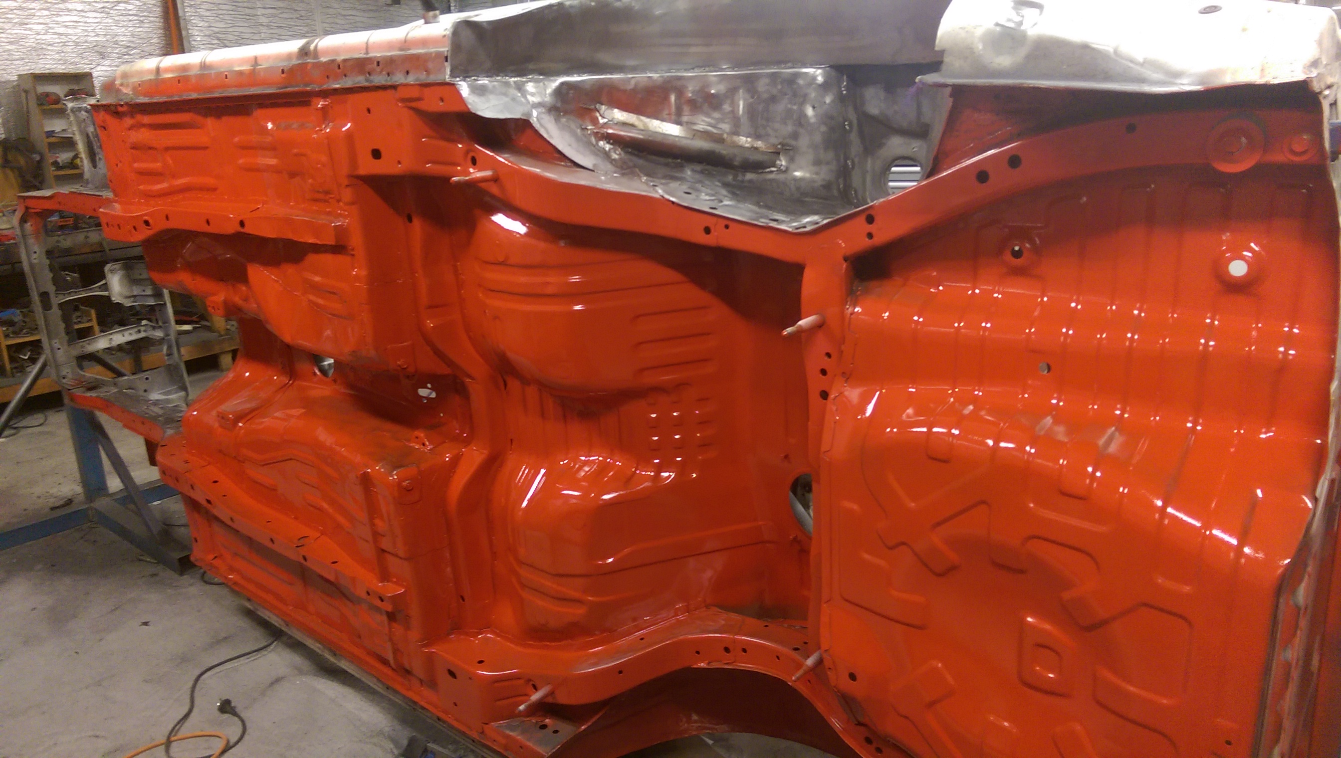 I still haven’t finished the wheel arches on the other side yet, but after another series of endless days on the grinder with my best mate, we had the underside all cleaned up and the first coat of paint it on.