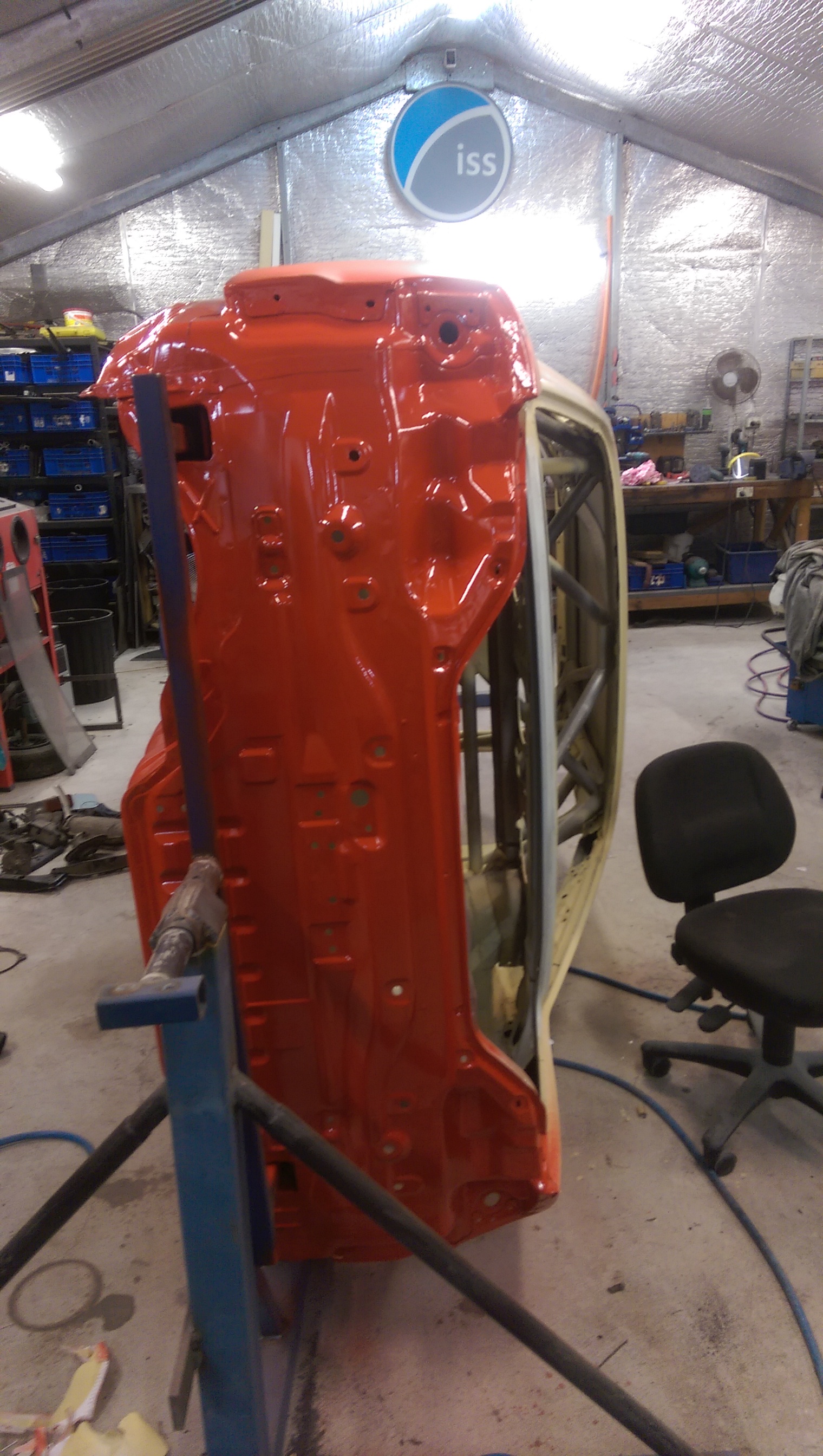 All nice and glossy already, even after just one light coat. Need to cover all the holes in the rear that used to have rubber bungs and wiring looms running through them, then add the final coat.