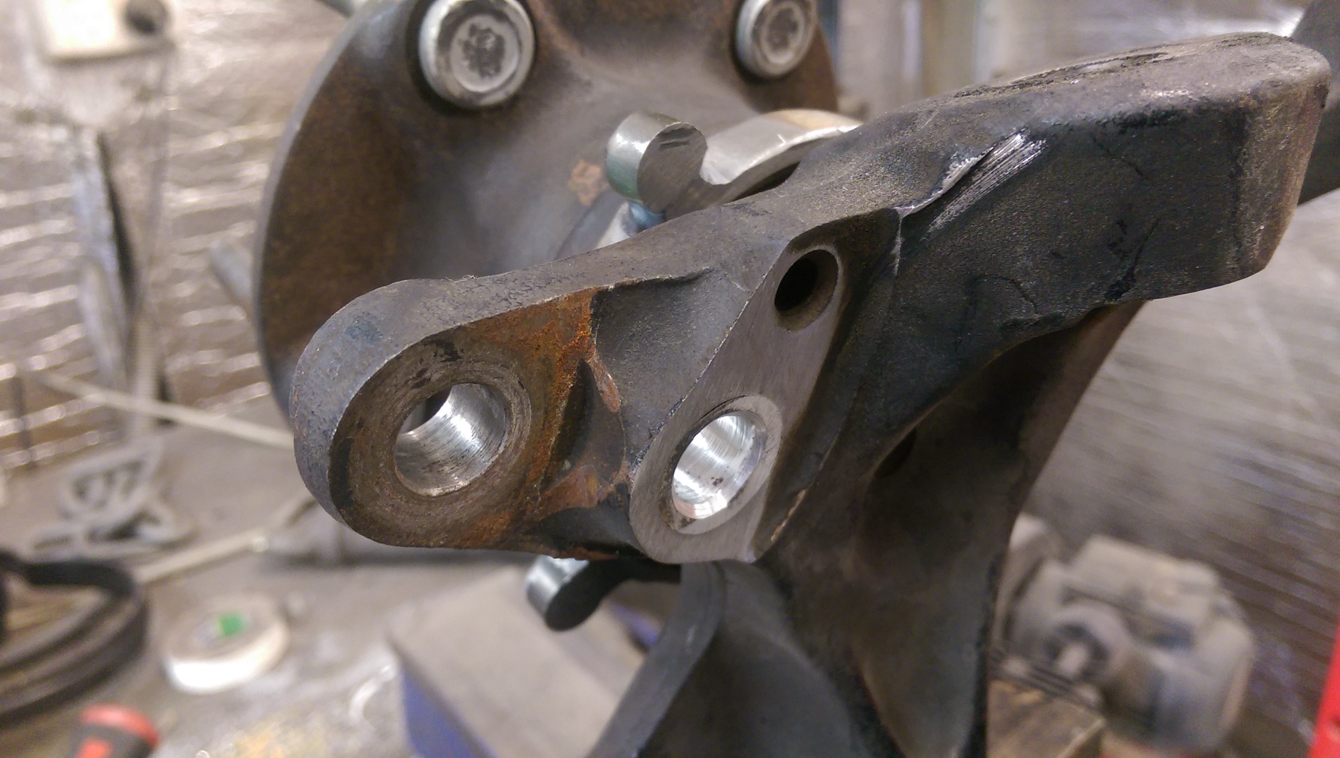 Added the steering lock stops and the sway bar mounts to the front lower control arms. Then made a mirror image of it for the other side.
