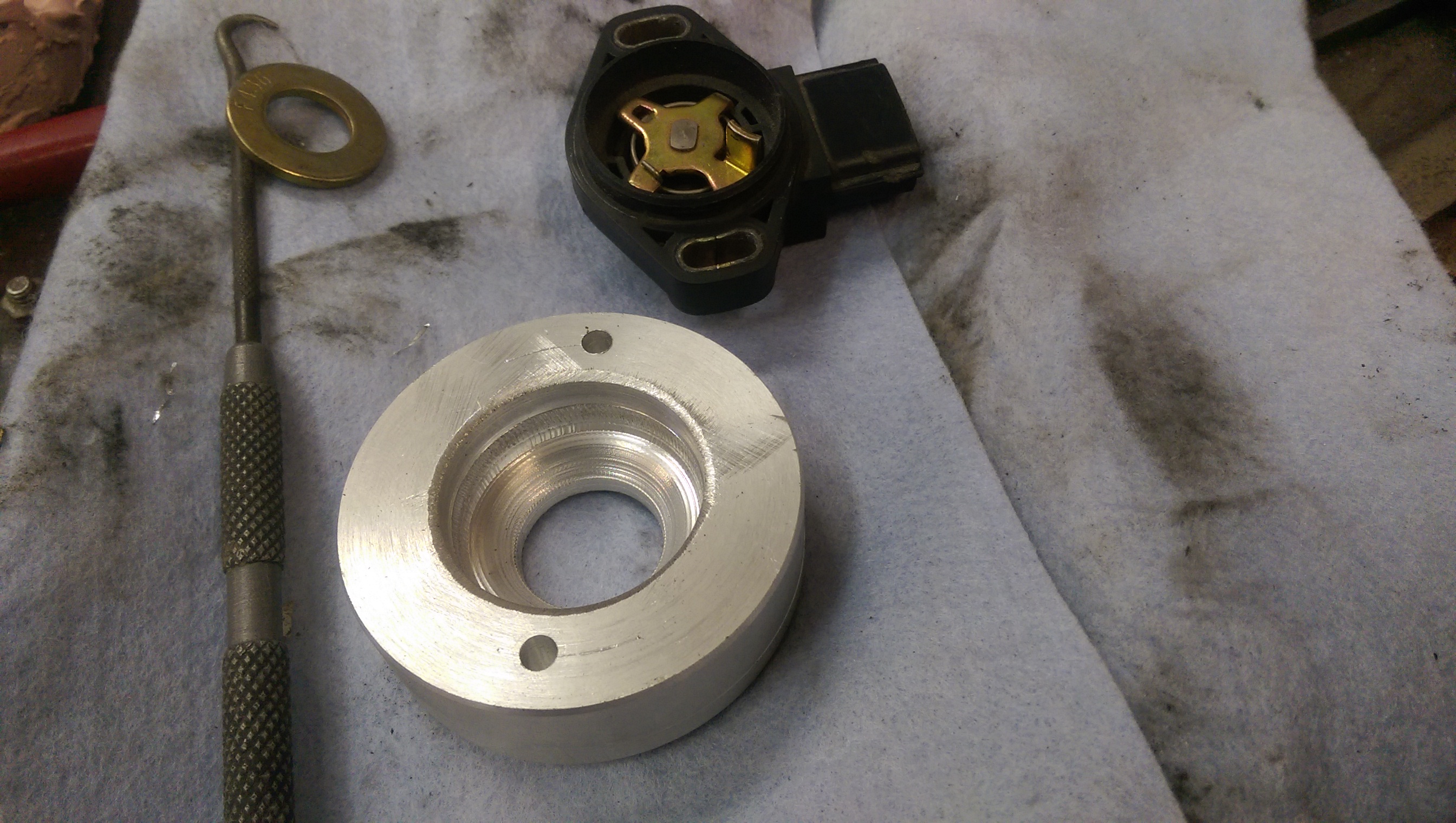 Ans the very raw beginnings of an adaptor to mount my TPS sensor to the quad throttle bodies.