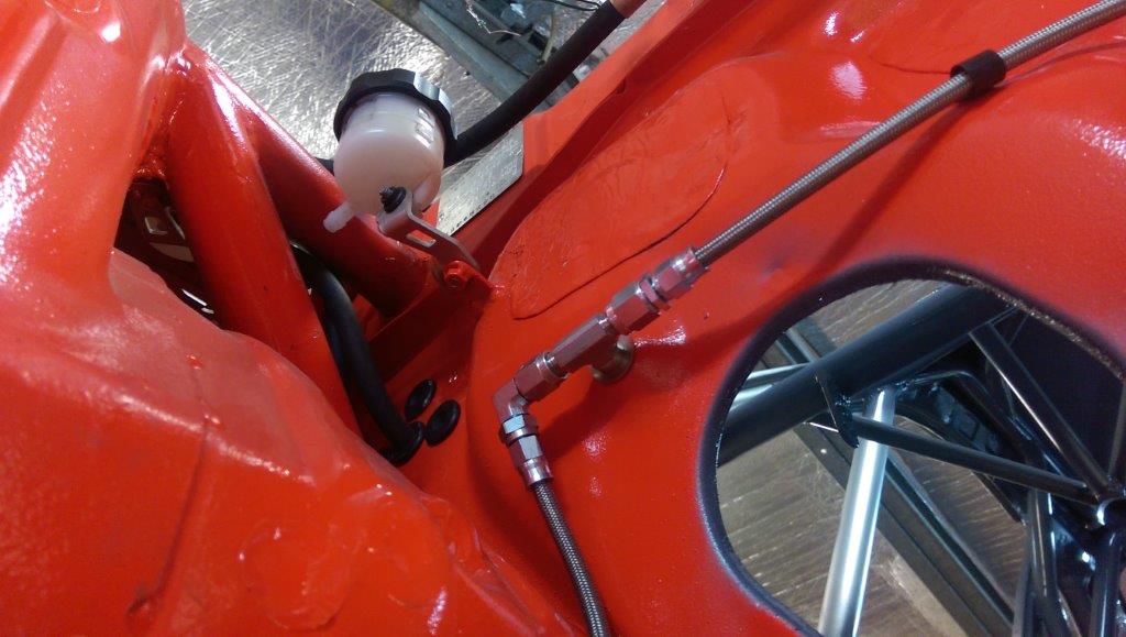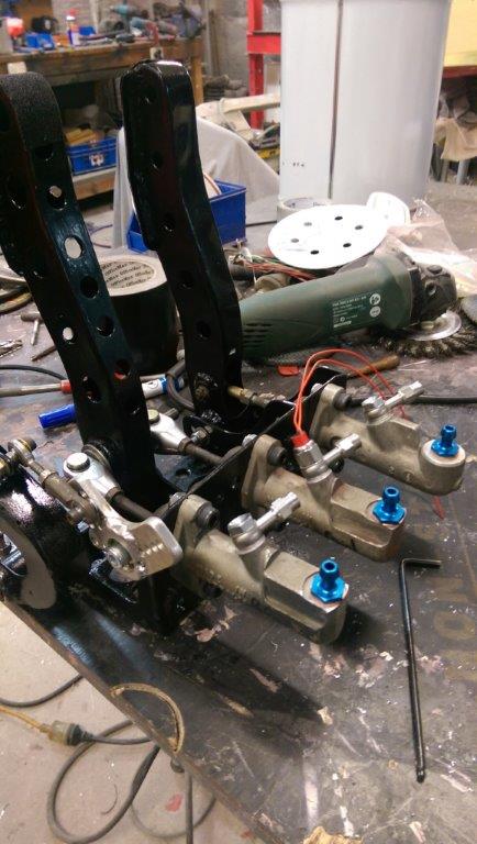 Starting to work on the lines from the fluid reservoirs to the masters. Will mount the pedals in this weekend! (they are just sitting there right now)