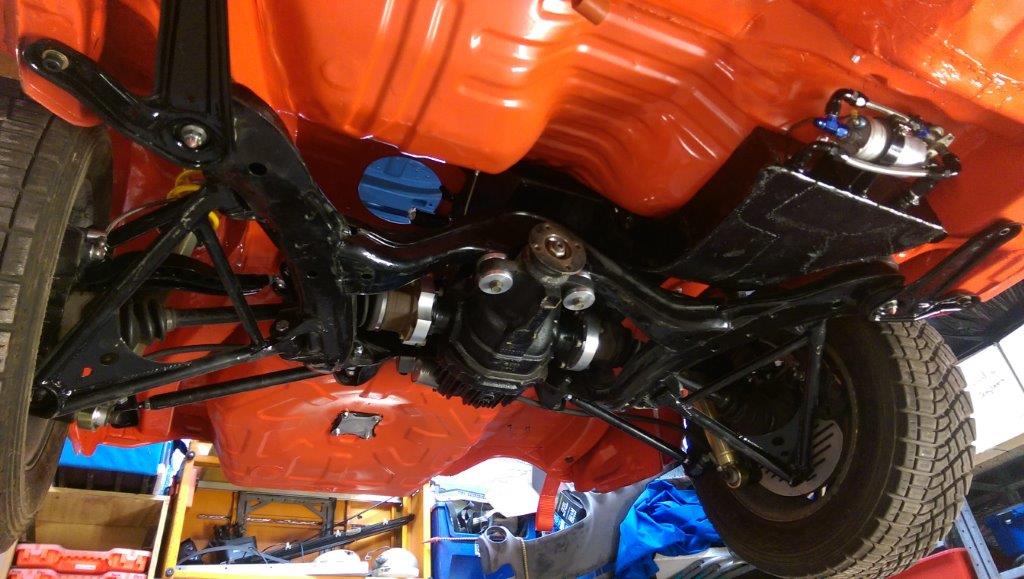 Got the rear subframe all in, shocks mounted, tyres on, fuel pump and regulator plumbing done!